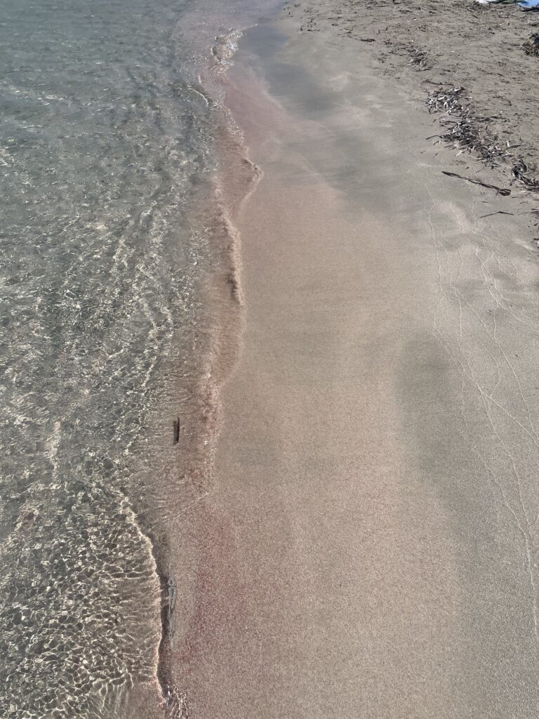 Elafonisi słynie z różowego piasku – i faktycznie, różowe drobinki mienią się w słońcu, choć może nie tak intensywnie jak na zdjęciach z Instagrama. Ale i tak to jedna z najpiękniejszych plaż, jakie widziałam. Płytka, spokojna woda, idealna dla dzieci, szeroka przestrzeń – pełen relaks.